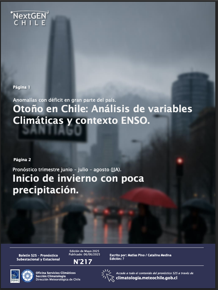 Boletín trimestral de la Dir. Meteorológica de Chile (DMC) por jvrengo | Jun 10, 2025 | boletín | 0 Comentarios Boletín trimestral de la Dir. Meteorológica de Chile (DMC) 1 archivo(s) 5 MB Descargar
